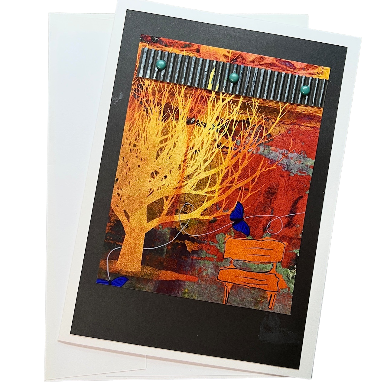 Each card is an original collage crafted by Sandra Freeman- combining photography, fabric, and texture. Every piece is one-of-a-kind - designed to be a cherished, framed, or given as a heartfelt gift.